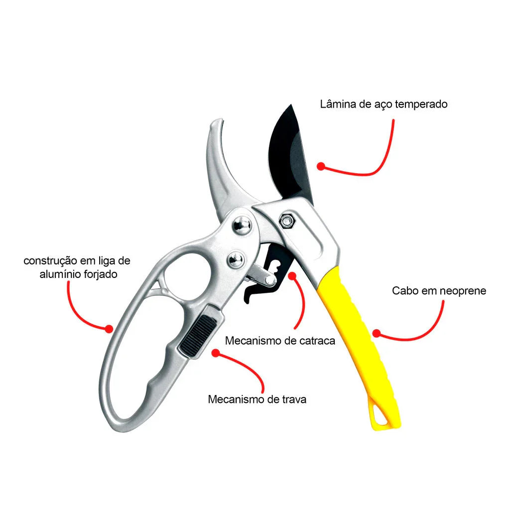 Projetada com um mecanismo de alavanca que amplifica a força aplicada, facilitando o corte de galhos mais grossos sem exigir muito esforço.
